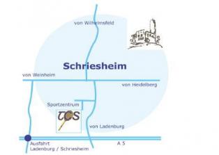 Am Ende der Talstraße links abbiegen, nächste Gelegenheit rechts abbiegen in die Ladenburger Straße, 2. Straße rechts abbiegen ins Sportzentrum, 1. Straße links.